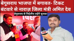 भाजपा में टिकट बंटवारे को लेकर मचे घमासान के बीच बेगूसराय से एक बड़ा राजनीतिक घटनाक्रम सामने आया है। भाजपा के जिला मंत्री अमित कुमार देव ने पार्टी से नाराज़ होकर बेगूसराय विधानसभा क्षेत्र से निर्दलीय चुनाव लड़ने का एलान किया है।